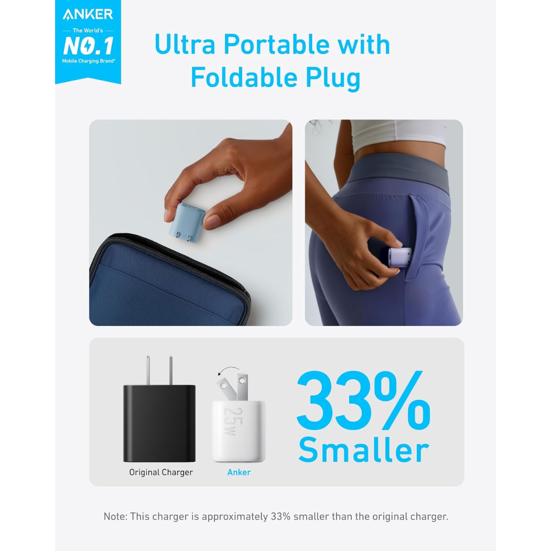Anker 25W USB-C Port Compact Charger Power Adapter [A2656K11] PPS Fast Charging, Foldable Plug (Cable not Included)