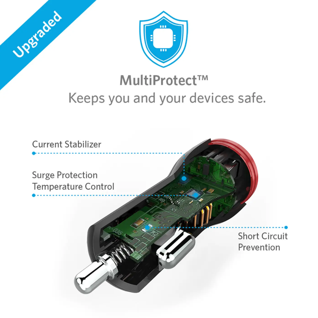 The Anker PowerDrive 2 (A2310H11) is a compact and efficient dual-port USB car charger designed to deliver high-speed charging for smartphones, tablets, and other USB-powered devices while on the road. Featuring Anker’s proprietary PowerIQ and VoltageBoost technologies, it intelligently detects connected devices and provides optimized charging speeds. With a combined output of 24W, it can charge two devices simultaneously at full speed. Its slim, low-profile design ensures it fits seamlessly into your car’s cigarette lighter socket without obstructing other controls. Advanced safety features protect both your devices and vehicle during charging.