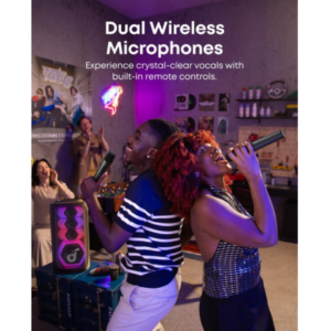 The Soundcore Rave 3S is a high-performance wireless Bluetooth party speaker designed to transform any space into a vibrant entertainment hub. Combining powerful sound output, smart karaoke features, and immersive lighting, it delivers a complete “party-in-a-box” experience for indoor and outdoor events.