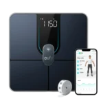The Smart Scale P2 Pro is a smart digital bathroom scale that provides comprehensive body composition analysis, tracking up to 16 health metrics—including weight, body fat, heart rate, and BMI—while syncing data to your smartphone via Wi-Fi and Bluetooth for easy fitness monitoring.