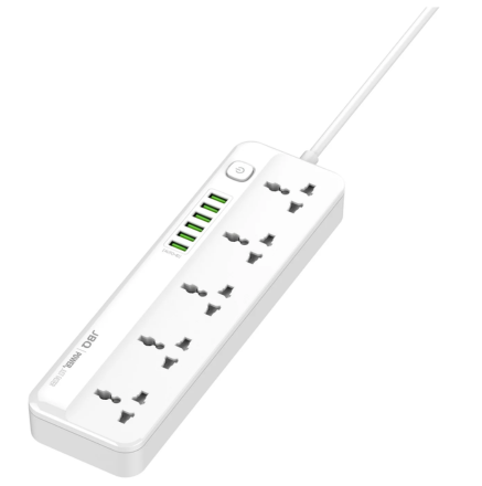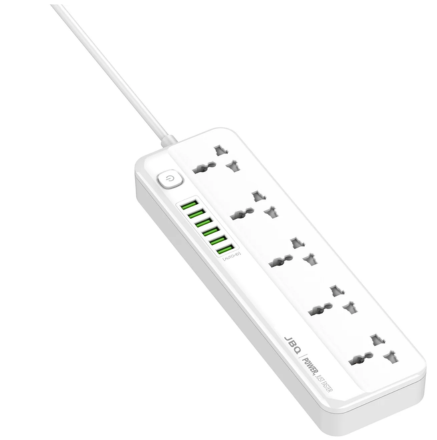 The JBQ Defender Series 5-Power Socket with 6 USB Ports is designed to cater to modern power needs with efficiency and safety. Featuring 5 universal power sockets and 6 USB ports with Auto-ID technology, this power strip intelligently detects and delivers the optimal charging speed for your devices. It supports a total power output of up to 2500W, making it suitable for heavy-duty use.