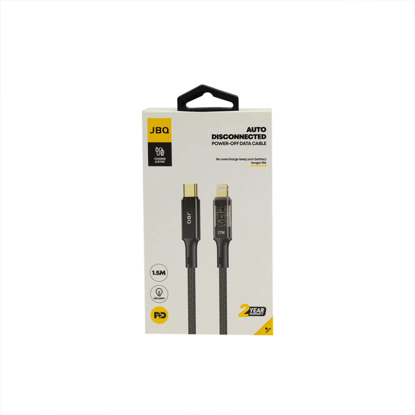 Designed for durability, the cable features a premium braided nylon exterior to resist wear and tangling. With a 1.5-meter length, it offers flexibility for use at home, in the office, or while traveling. Backed by a 2-year warranty, the JBQ Lightning Cable guarantees reliability and long-lasting performance for all Lightning-enabled devices.