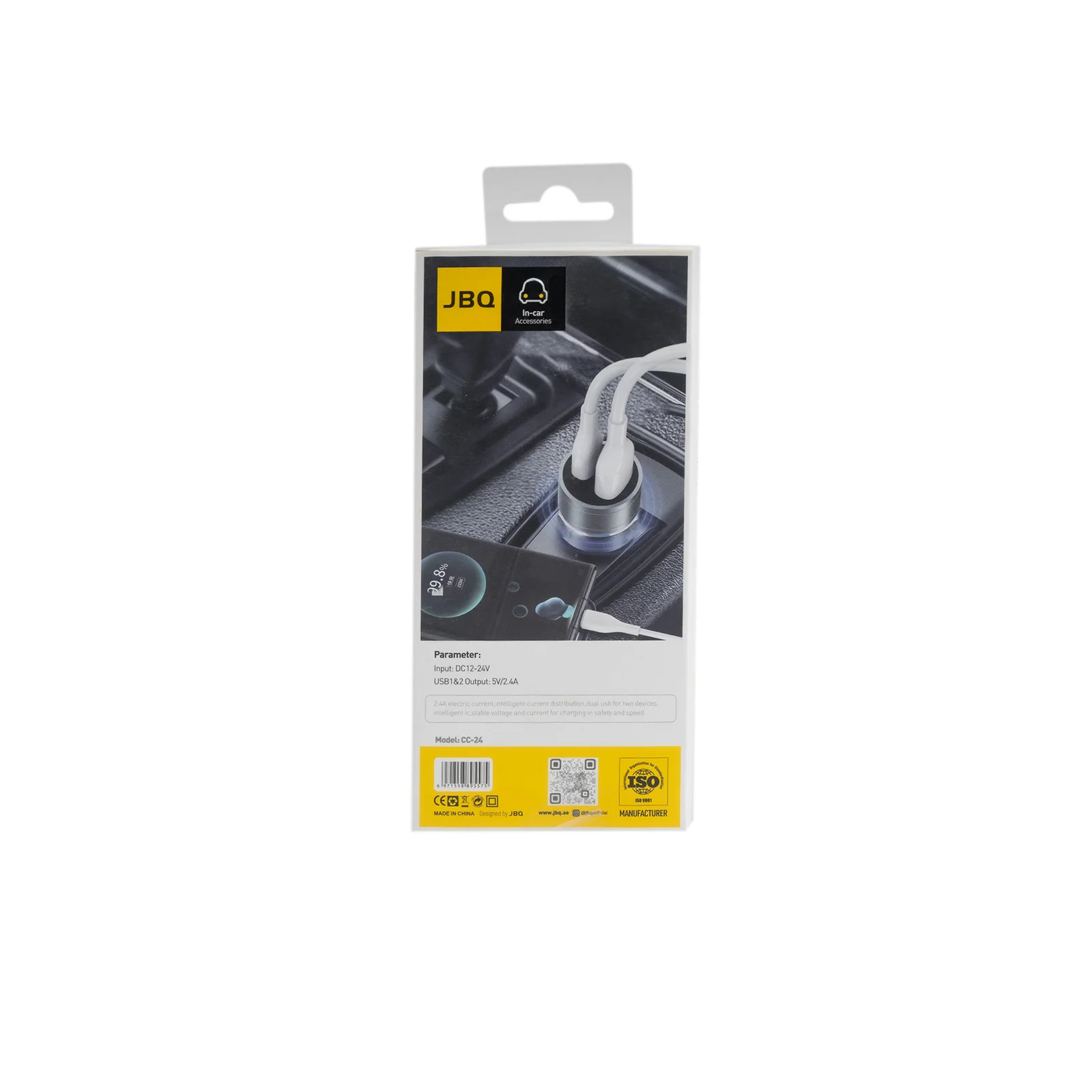 JBQ Metal Quick Car Adapter – Dual USB Fast Charging, 2Port/2.4A CC-24
