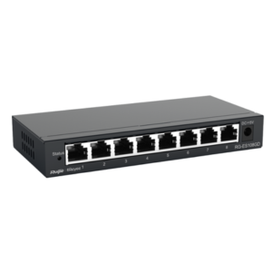 The Ruijie | Reyee RG-ES108GD is an 8-port Gigabit unmanaged Ethernet switch from Ruijie’s Reyee series, designed to provide high-speed wired connectivity with a simple plug-and-play experience — no configuration needed. It’s a solid choice for users who need to connect multiple devices (like computers, network storage, IP cameras or Wi-Fi access points) on a wired network without the complexity of managed switches.