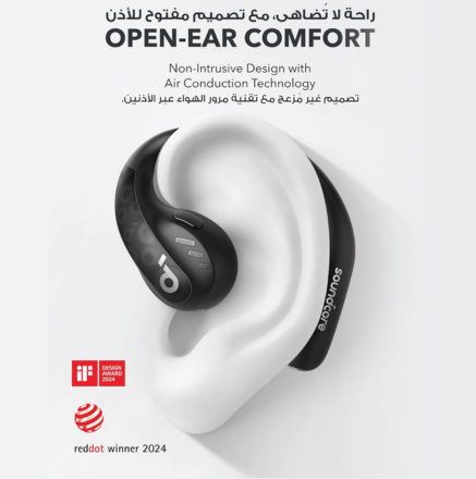 Sits outside your ear — no ear canal pressure, better comfort, and environmental awareness