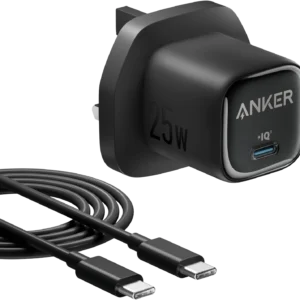 The Anker 25W Charger is a compact and efficient USB-C wall charger that delivers fast charging with Power Delivery and PPS support, making it ideal for Samsung Super Fast Charging as well as iPhones and other devices. Its small, travel-friendly design and built-in safety features ensure reliable everyday charging.
