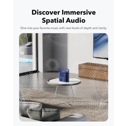 The Soundcore Motion X500 is a compact yet powerful Bluetooth speaker designed to deliver immersive, room-filling audio with advanced spatial sound technology. It combines portability with premium audio features, making it ideal for both indoor listening and outdoor use.