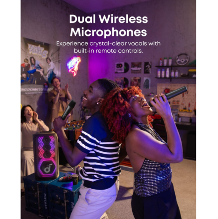 The Soundcore Rave 3S is a high-performance wireless Bluetooth party speaker designed to transform any space into a vibrant entertainment hub. Combining powerful sound output, smart karaoke features, and immersive lighting, it delivers a complete “party-in-a-box” experience for indoor and outdoor events.