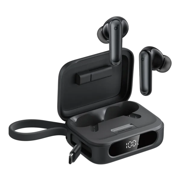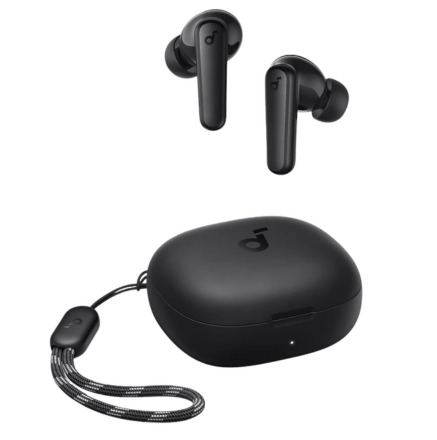 The Soundcore P40i are budget-friendly wireless earbuds featuring adaptive noise cancellation, powerful bass, and up to 60 hours of total battery life, along with clear calls and a unique charging case that doubles as a phone stand.